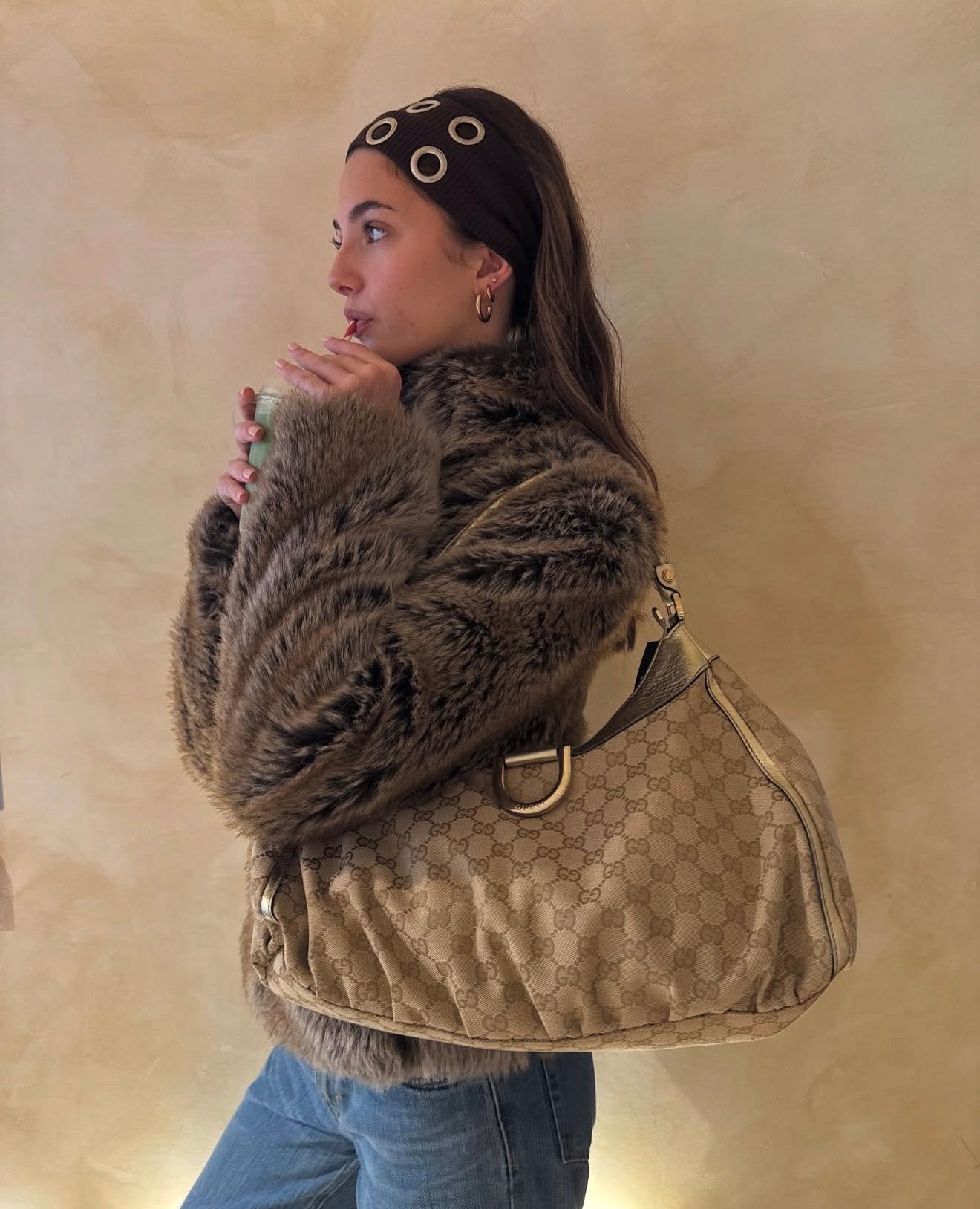 Gucci Abbey Monogram Shoulder Bag- white leather