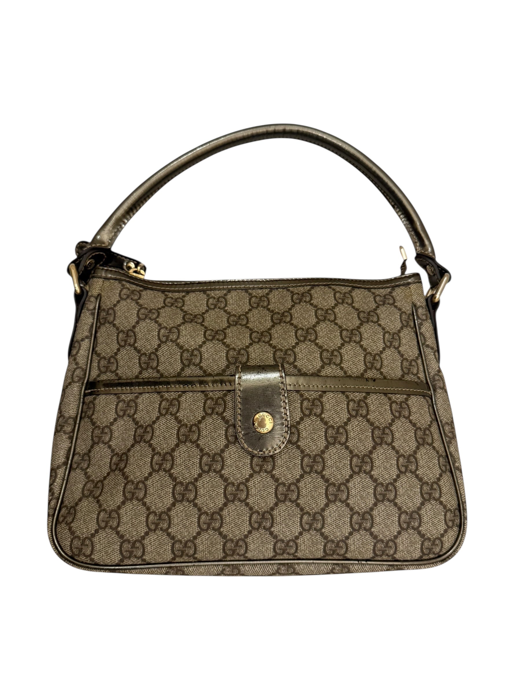 Gucci monogram mini shoulder bag in a gorgeous gun metal silver featuring the classic monogram.