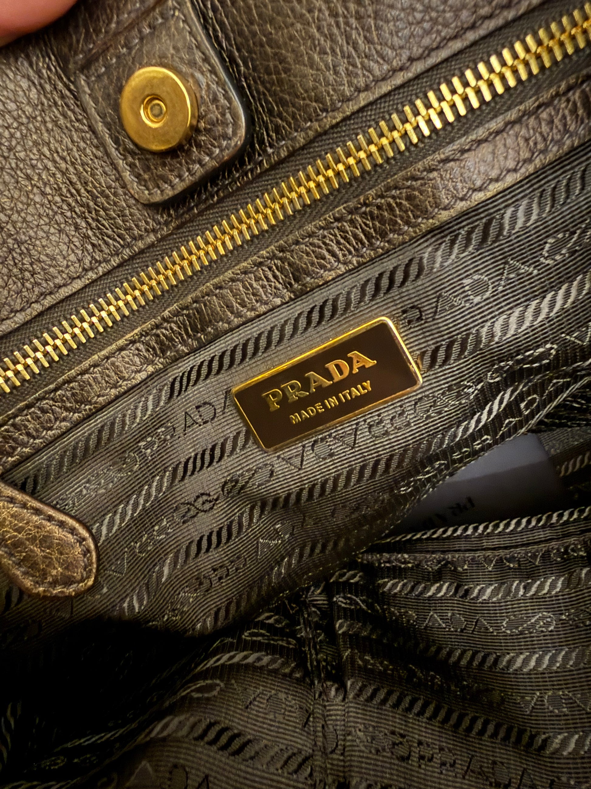 Prada Vitelli Daino Bronze Leather Shoulder Bag